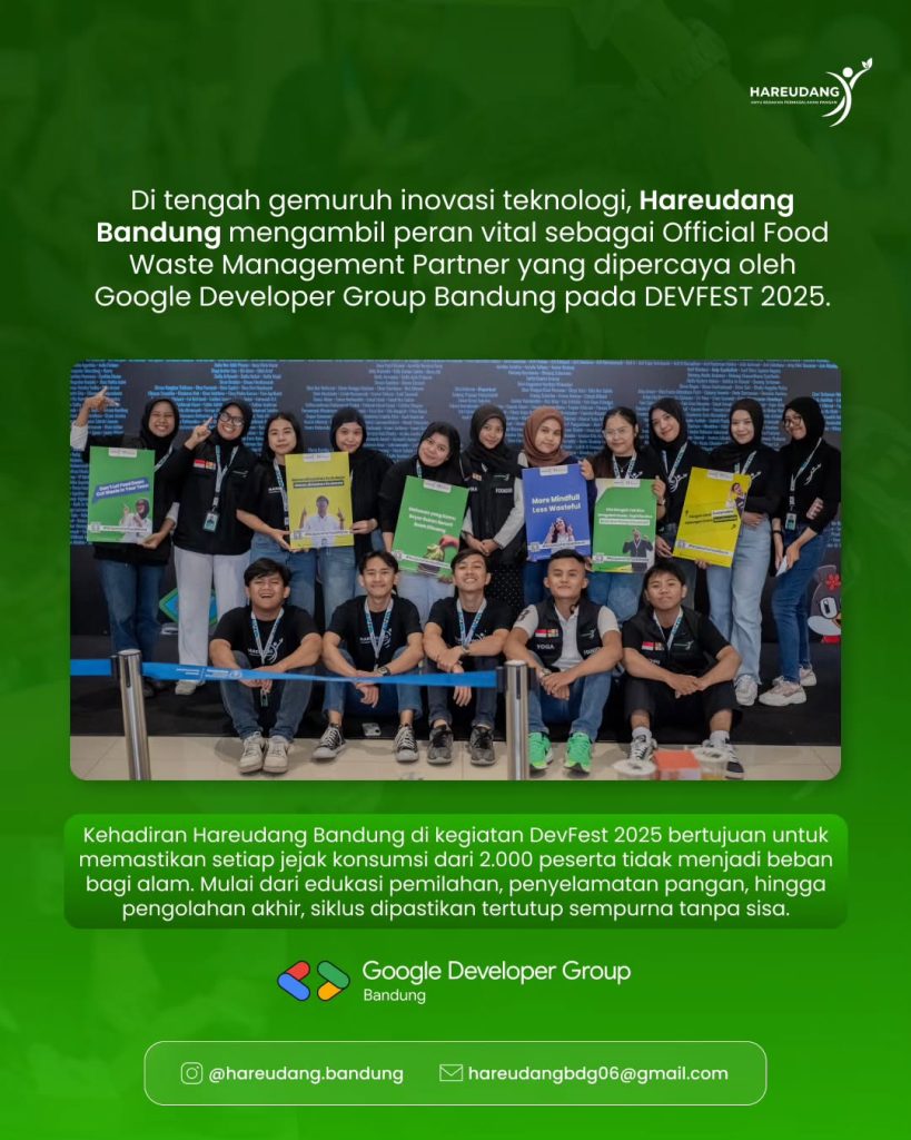 “Kolaborasi dengan Hareudang Bandung membuktikan bahwa event teknologi besar bisa dijalankan secara ramah lingkungan. DevFest Bandung 2025 bukan hanya tentang teknologi, tetapi juga tentang keberlanjutan dan tanggung jawab sosial.”