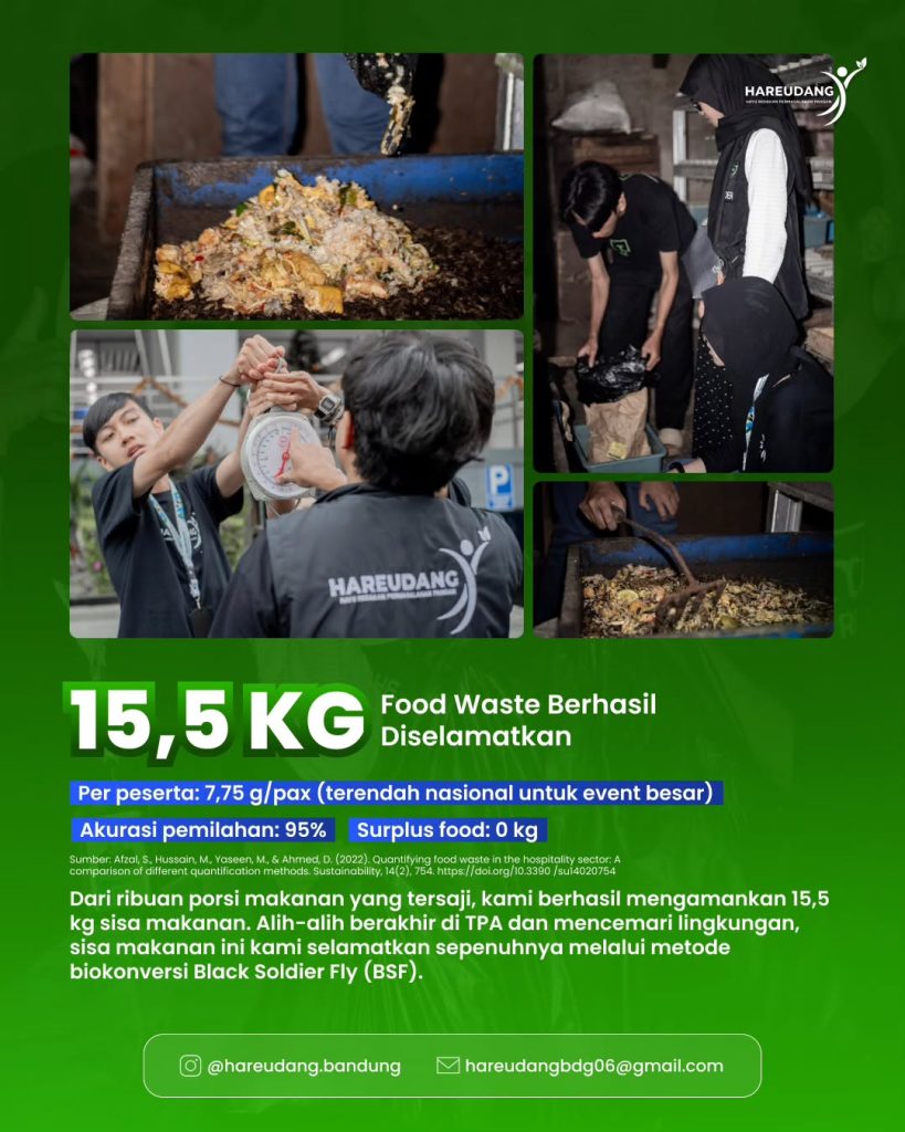 - Total food waste: 15,5 kg dari 2.000 peserta